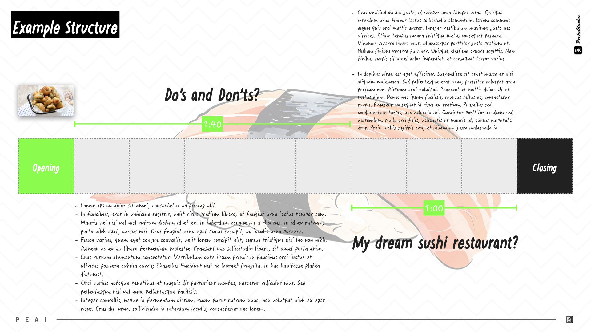 Include 1–2 subtopics and divide the time between them (e.g., 1:40 for subtopic A and 1:00 for subtopic B).